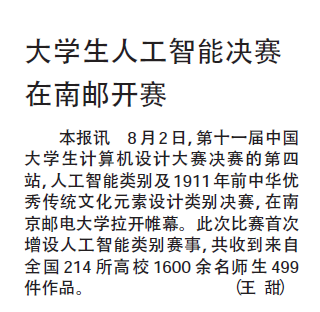 【新华日报】大学生人工智能决赛在南邮开赛