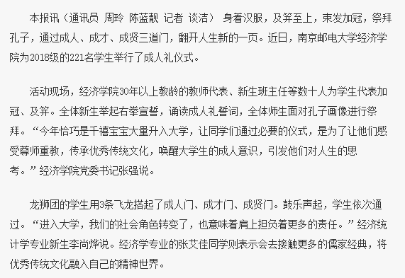 【南京日报】南邮举办尊师祭孔成人礼活动