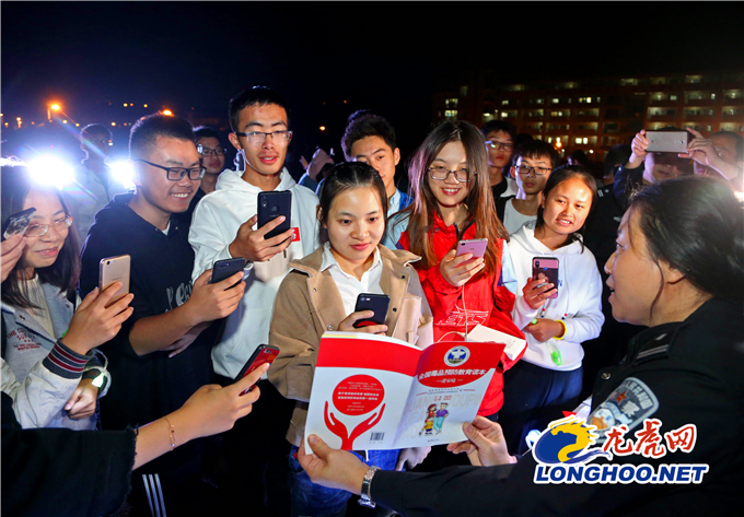 现场,禁毒民警还向大学生们推荐“南京禁毒”公众号,展示禁毒书籍,希望通过夜读的新颖形式,让更多的大学生了解禁毒工作,在书灯点点中照耀心灵,在书香阵阵里陶冶情操。