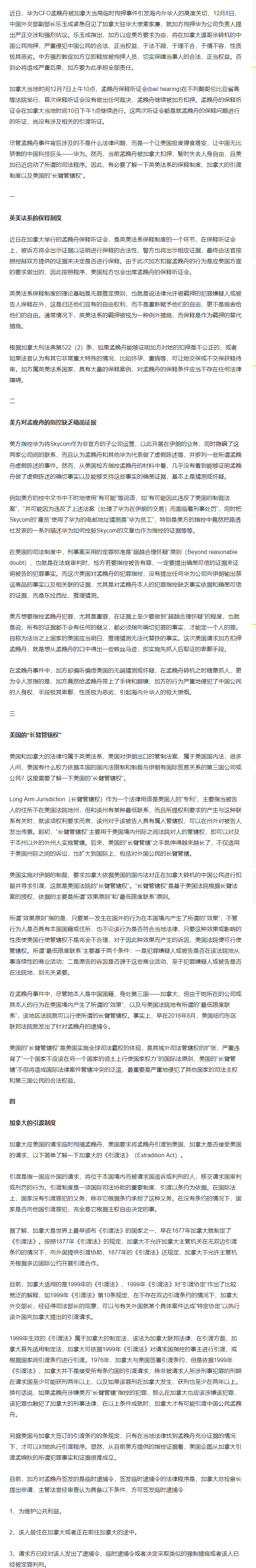 王春晖:孟晚舟事件背后的几个法律问题,加拿大的保释和引渡制度与美国的“长臂管辖权”