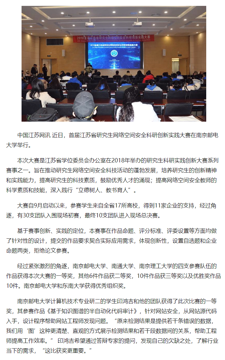 【中国江苏网】首届江苏省研究生网络空间安全科研创新大赛在南邮举行
