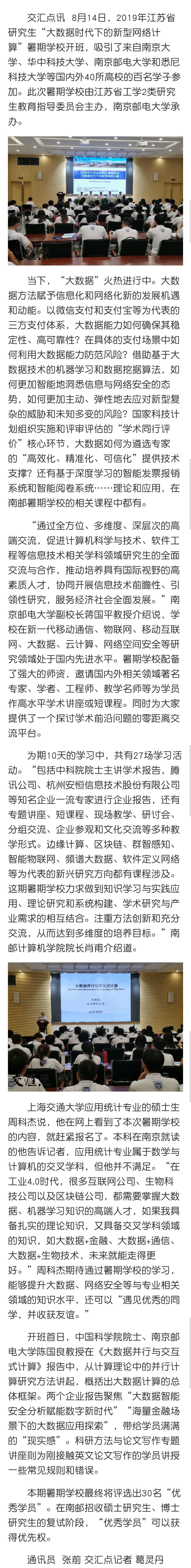 【交汇点】“大数据”下的我们安全吗?中外40所高校学子来宁学习“新型网络计算”
