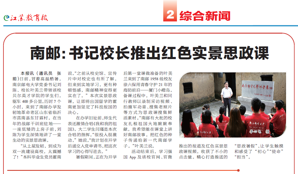 【江苏教育报】南邮:书记校长推出红色实景思政课