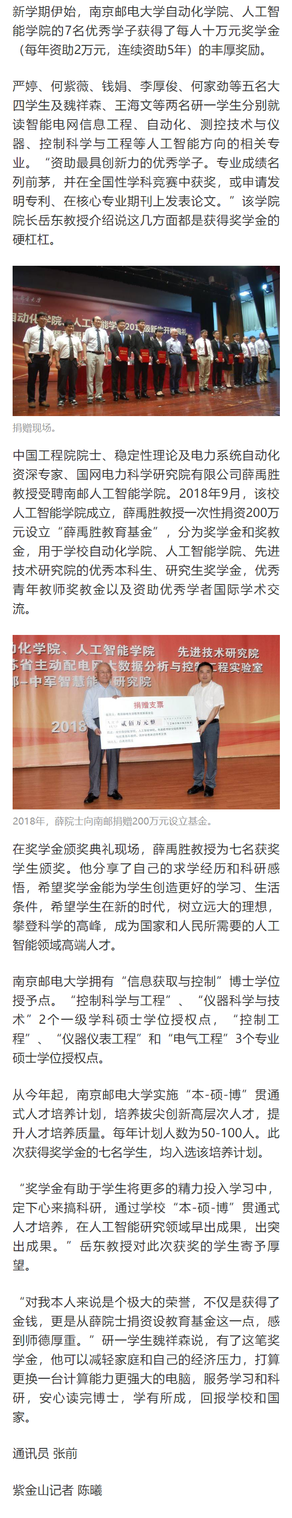 【紫金山】一开学先领十万块!南邮7名优秀学子获得院士奖学金