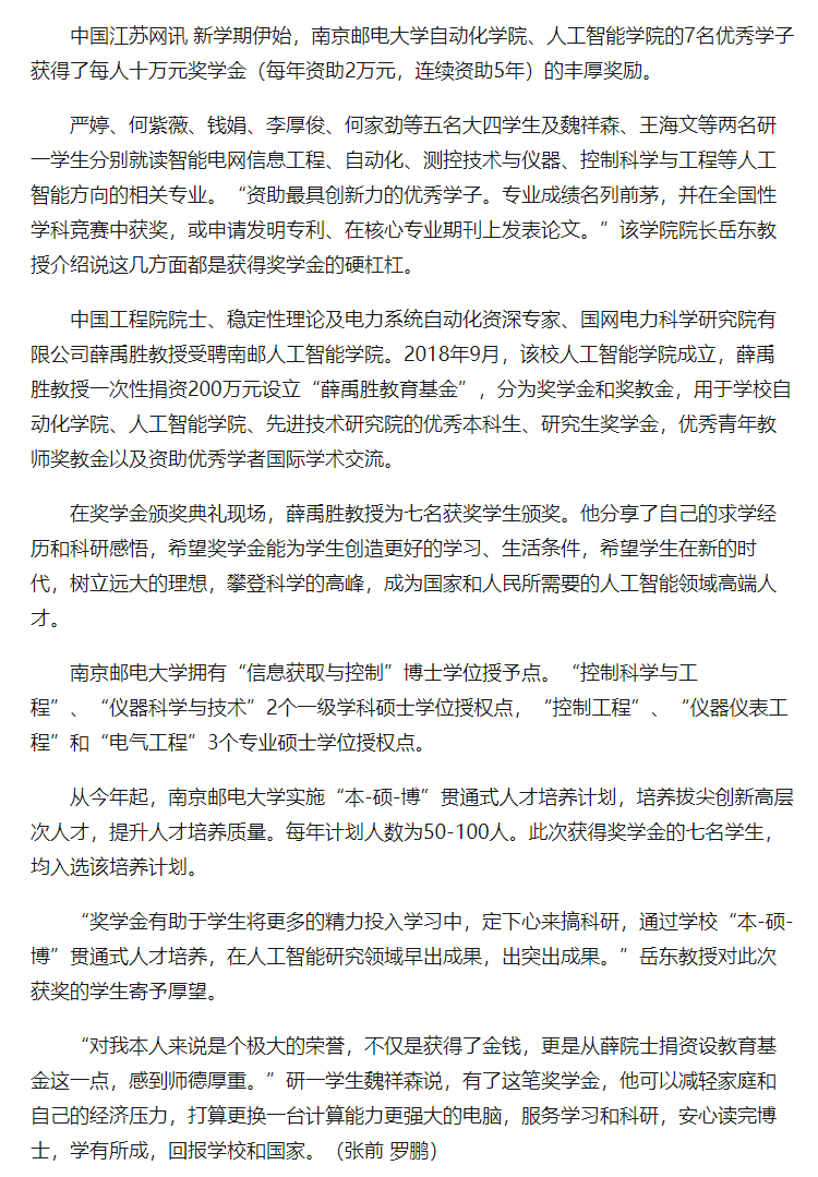 【中国江苏网】南邮院士设基金 人均十万元奖励“人工智能”优秀学子