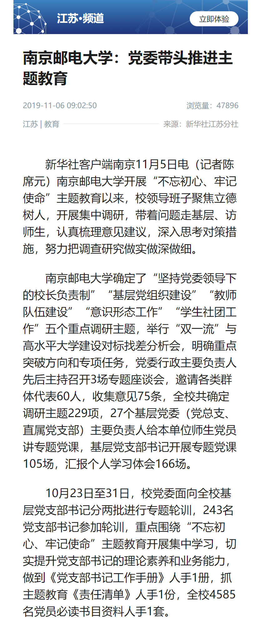 【新华社客户端】南京邮电大学:党委带头推进主题教育