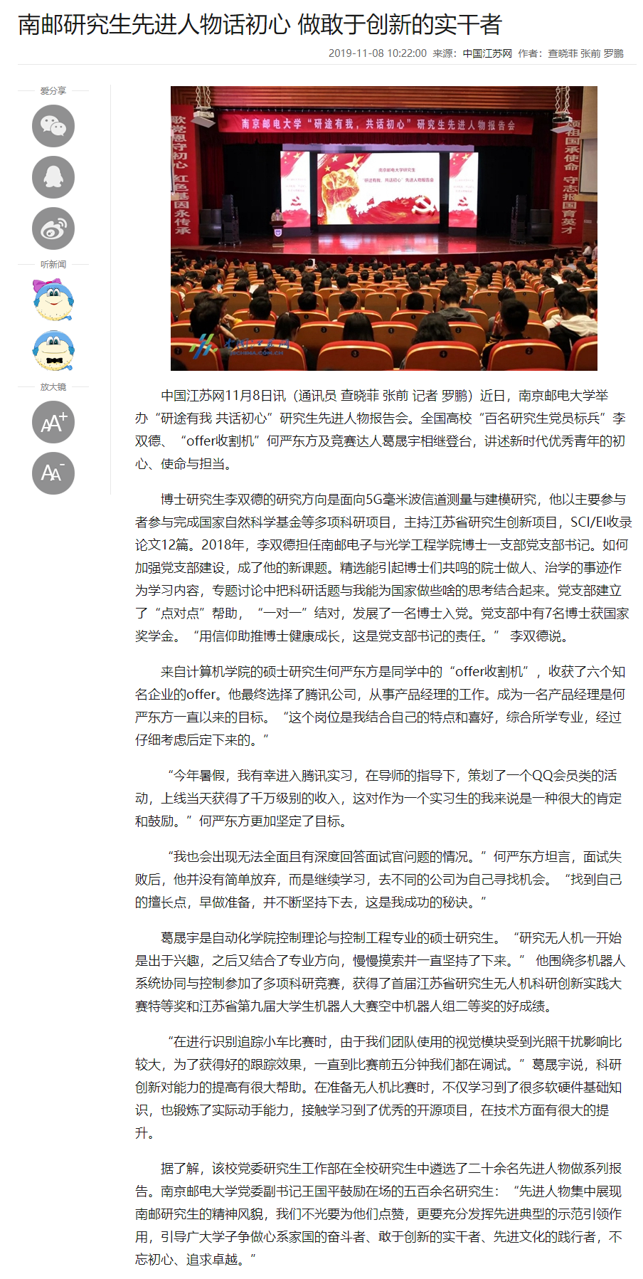 【中国江苏网】南邮研究生先进人物话初心 做敢于创新的实干者