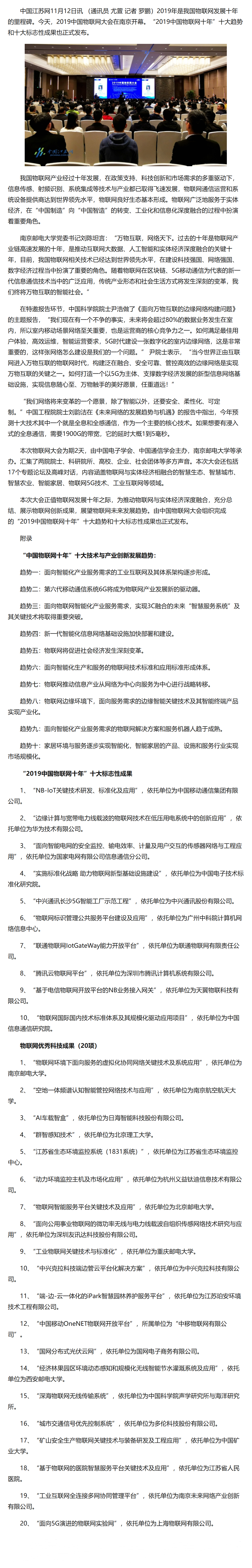 【中国江苏网】“中国物联网十年”十大发展趋势和标志性成果在宁发布