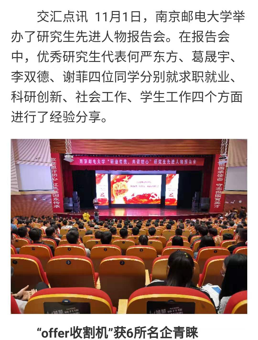 【交汇点】“研途有我 共话初心”南邮优秀研究生代表分享求职、科研故事