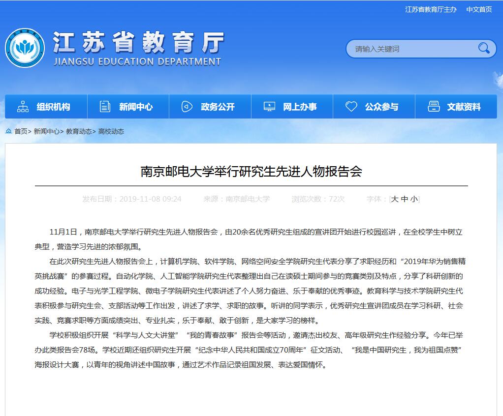 【江苏教育】南京邮电大学举行研究生先进人物报告会