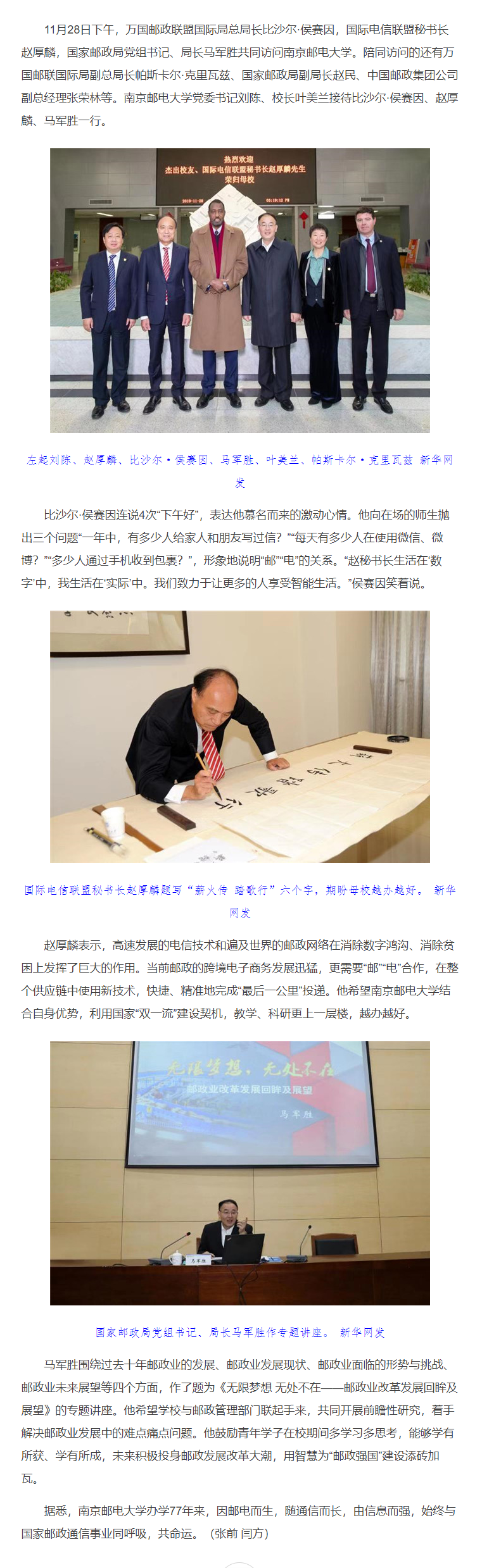 【新华网】万国邮联、国际电联、国家邮政局领导访问南邮