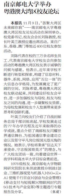 【人民邮电报】南京邮电大学举办粤港澳大湾区校友论坛