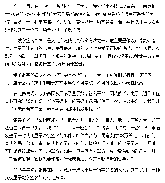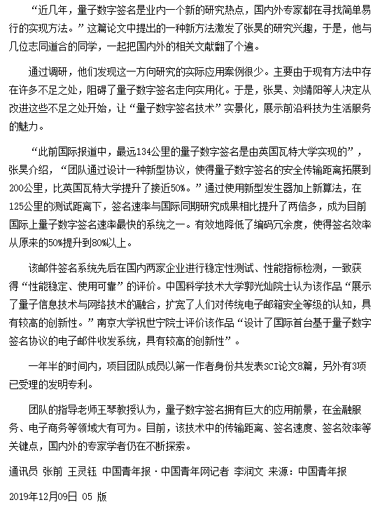 【中国青年报】“量子密码”让电子支付更安全