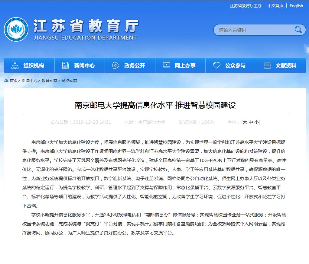 【江苏教育】南京邮电大学提高信息化水平 推进智慧校园建设