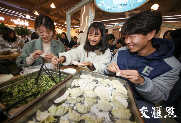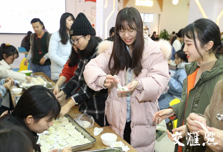 交汇点讯 12月22日,南京邮电大学管理学院举办“温暖冬至 相伴你我”冬至包饺子活动,一百多名师生齐力包饺子,让在外求学的学子们、异地工作的老师们都感受到了浓浓的“家”味儿。