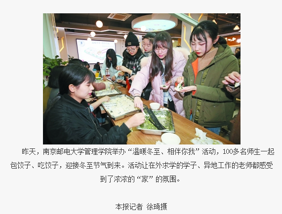 【南京日报】头版:包饺子 过冬至(图片新闻)