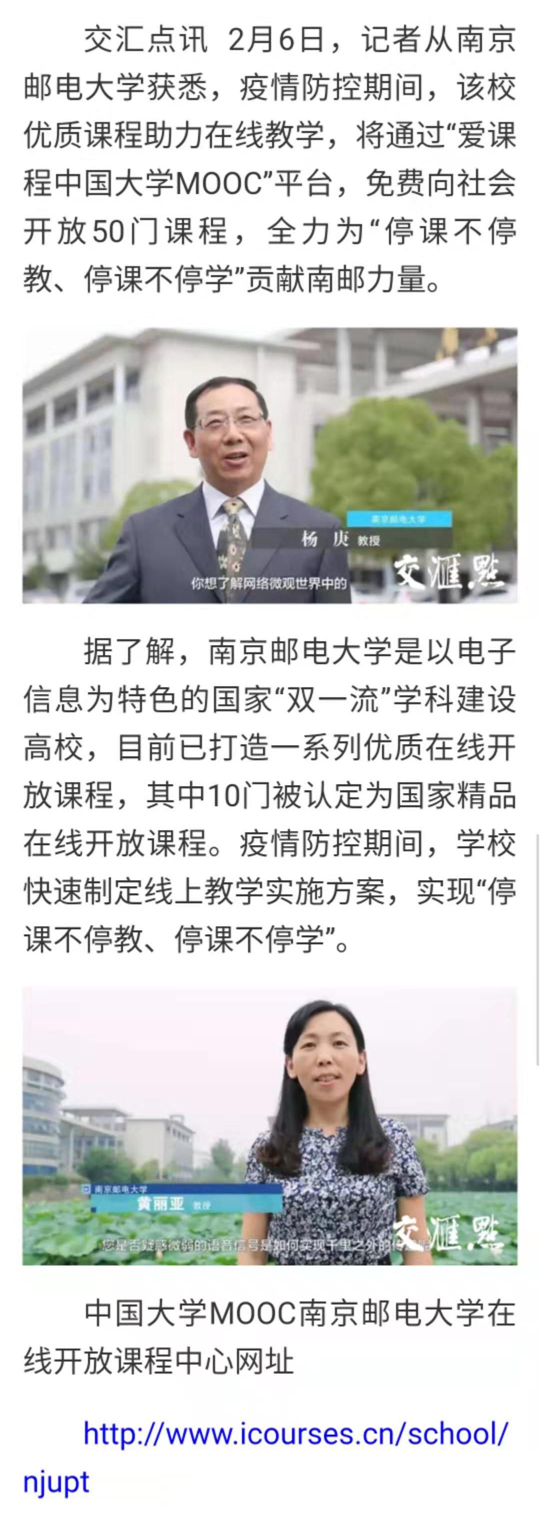 【交汇点】停课不停学,学习不延期!南邮50门在线课程免费开放