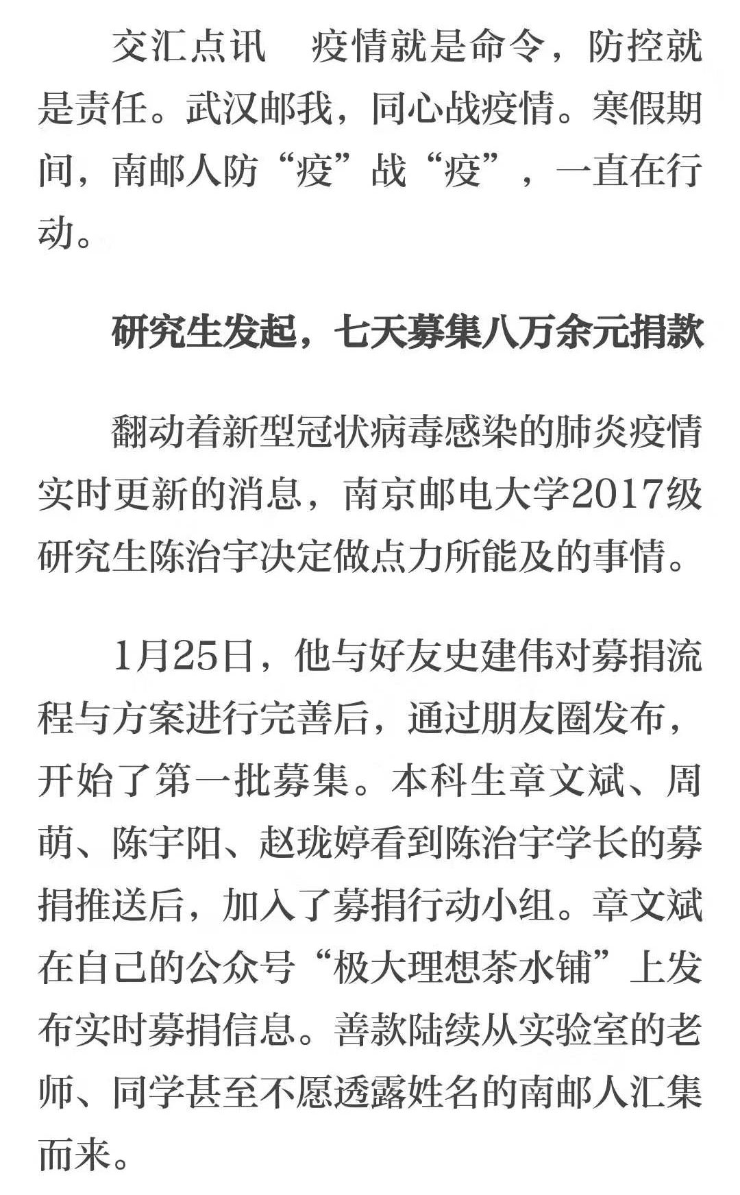 【交汇点】7天募集8万余元、进口罩生产企业……南邮师生防“疫”战“疫”在行动