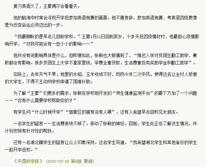 文章来源:2020年2月18日《中国科学报》第6版头条