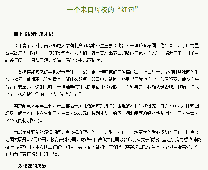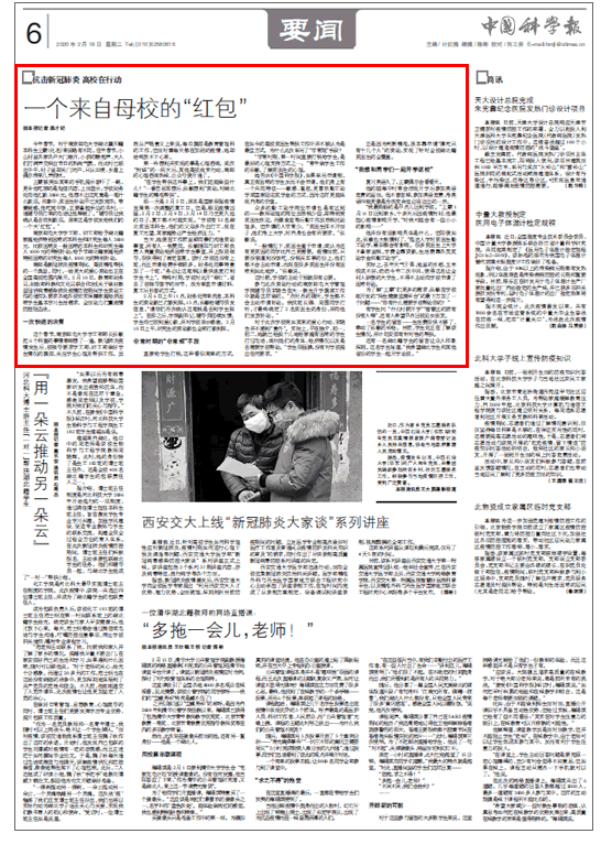 【中国科学报】一个来自母校的“红包”