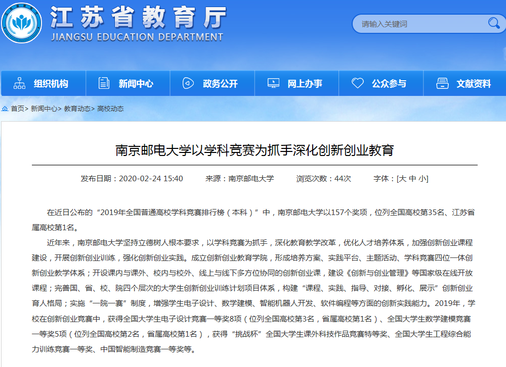 【江苏教育】南京邮电大学以学科竞赛为抓手深化创新创业教育