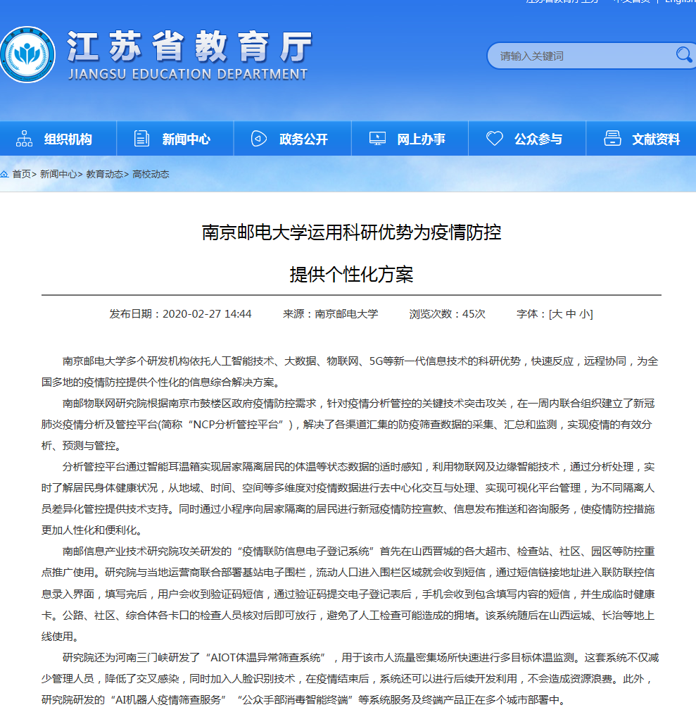 【江苏教育】南京邮电大学运用科研优势为疫情防控提供个性化方案