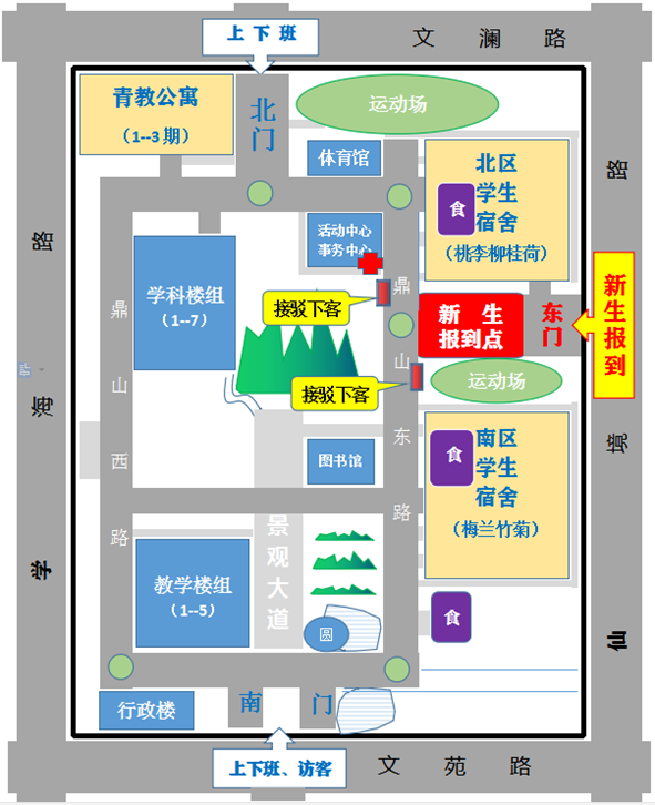1.仙林校区报到点设置在东门路段(学鼎路),仙境路东大门为2020级新生报到主要通道。禁止机动车辆停放在学鼎路上。送学车辆可停放在东门外仙境路上,即停即走。