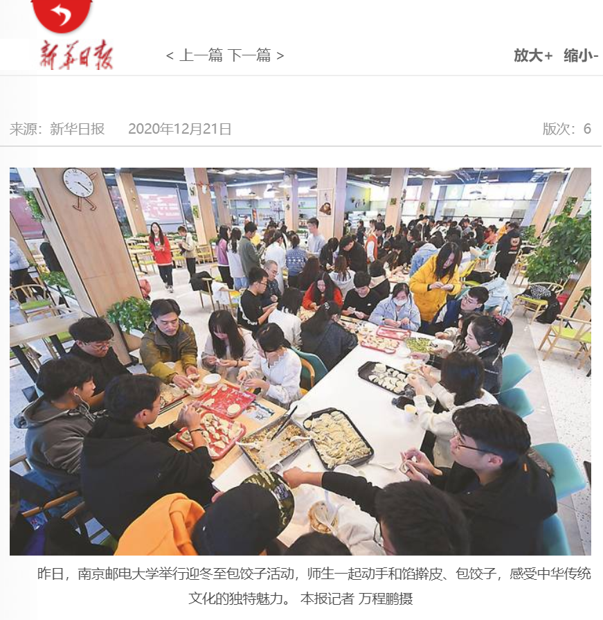 【新华日报】图片新闻“南京邮电大学举行迎冬至包饺子活动”