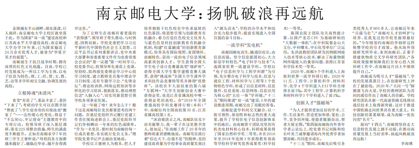 【新华日报】南京邮电大学:扬帆破浪再远航