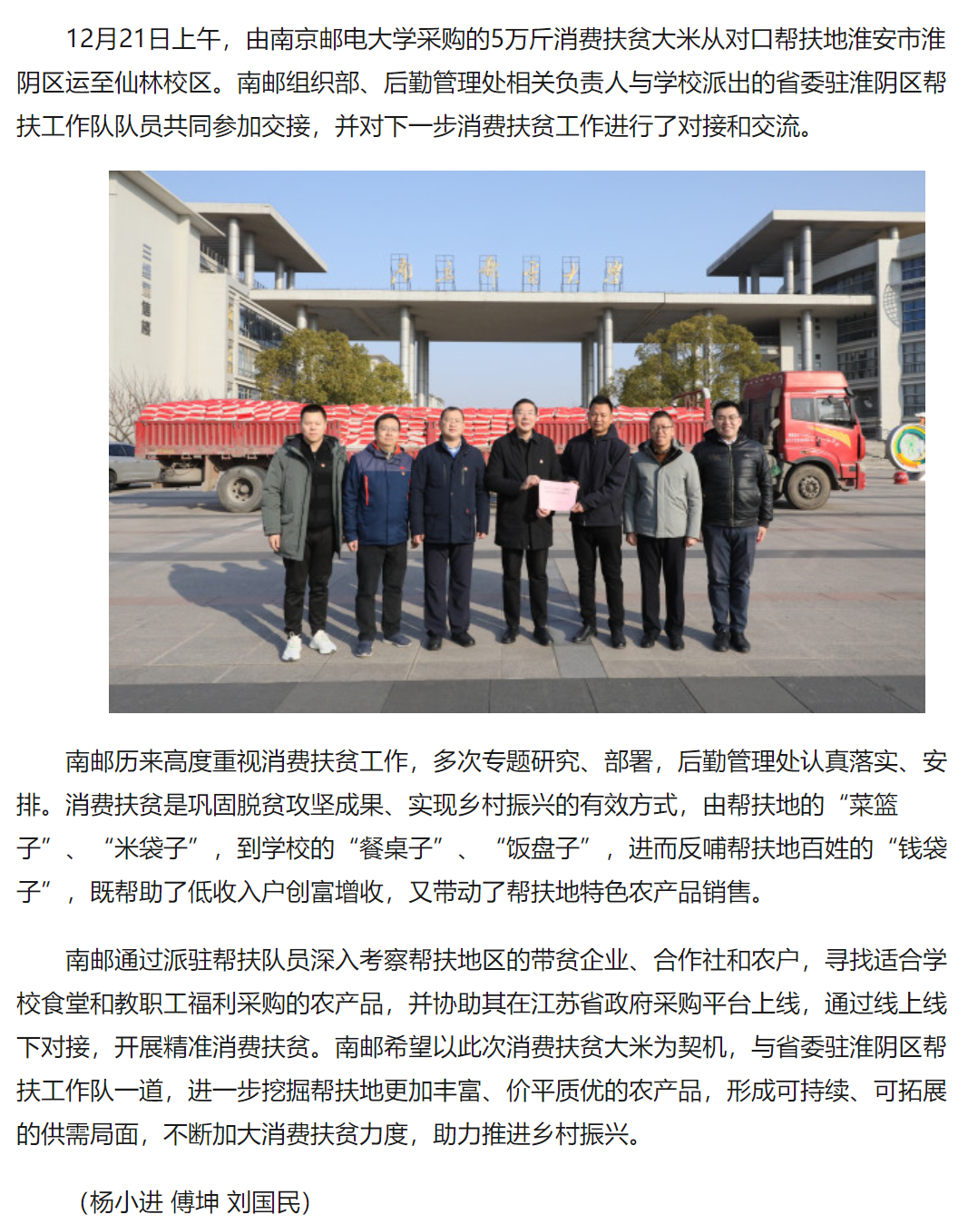 【中国江苏网】淮阴工作队:南京邮电大学“米袋子”链接帮扶地“钱袋子”
