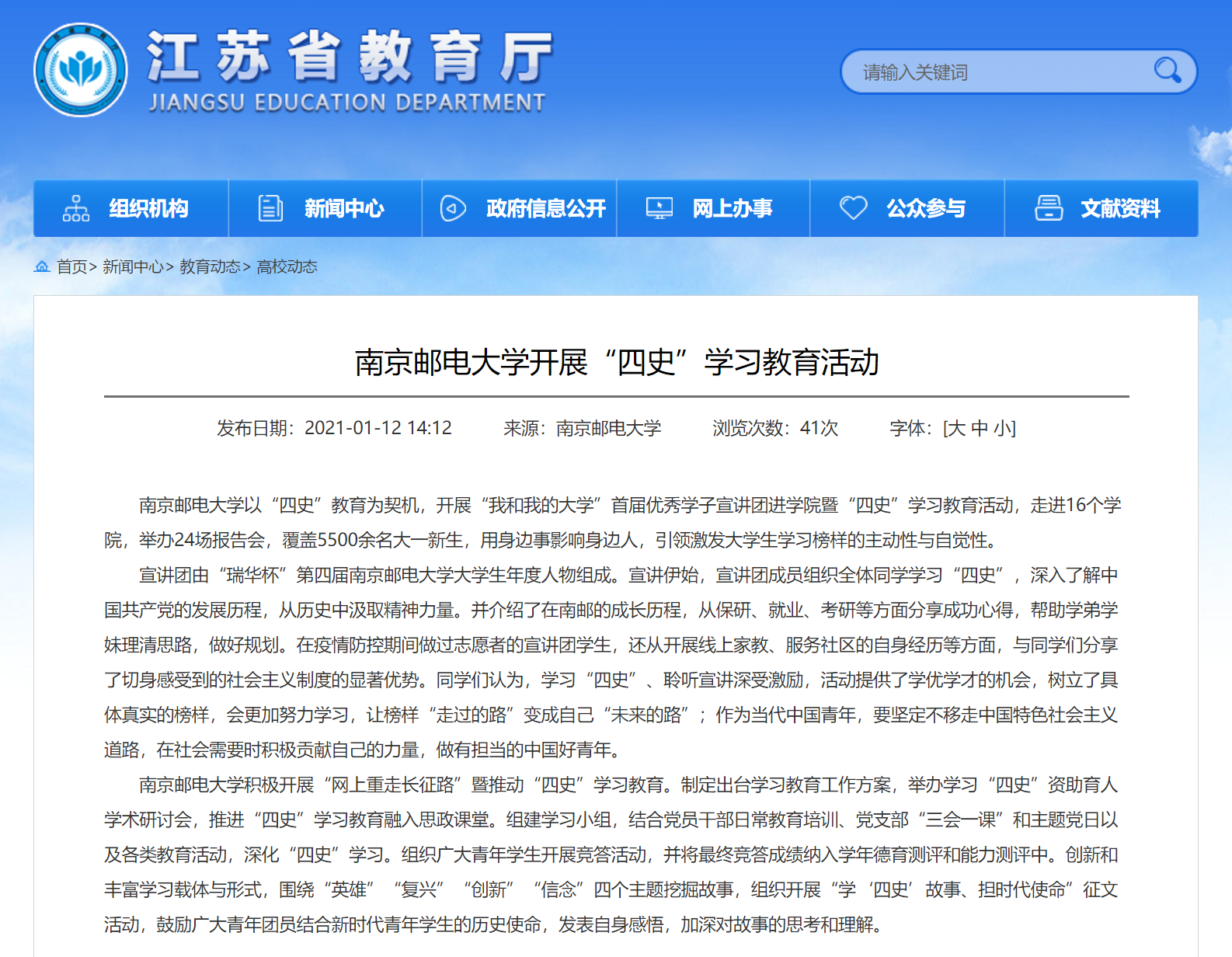 【省教育厅官网】南京邮电大学开展“四史”学习教育活动