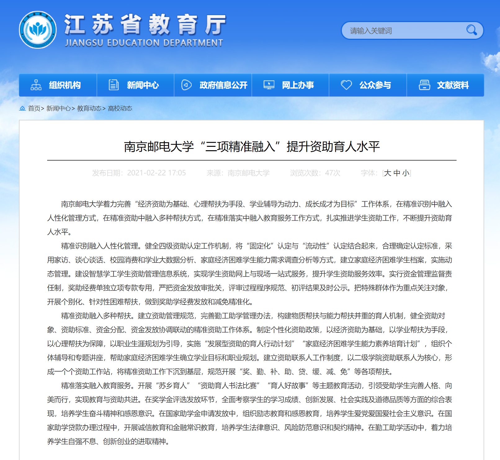 【省教育厅官网】南京邮电大学“三项精准融入”提升资助育人水平