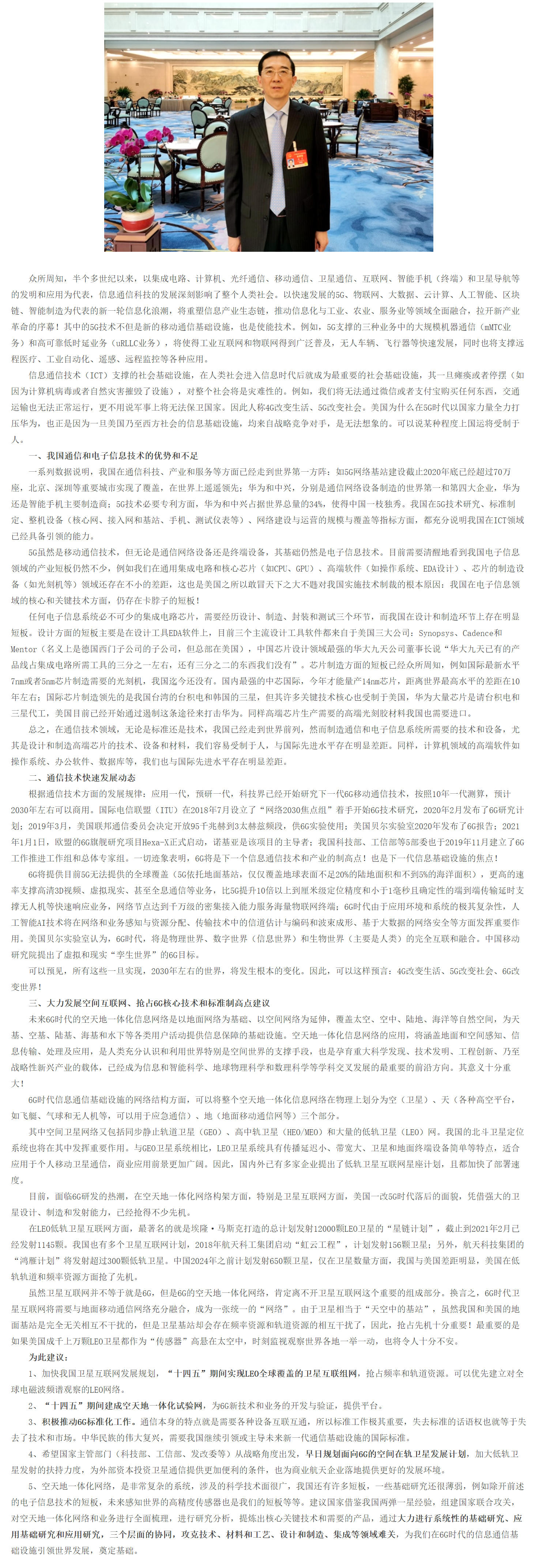 【中国农工民主党】杨震代表:关于大力发展空间互联网、抢占6G技术和标准制高点的建议