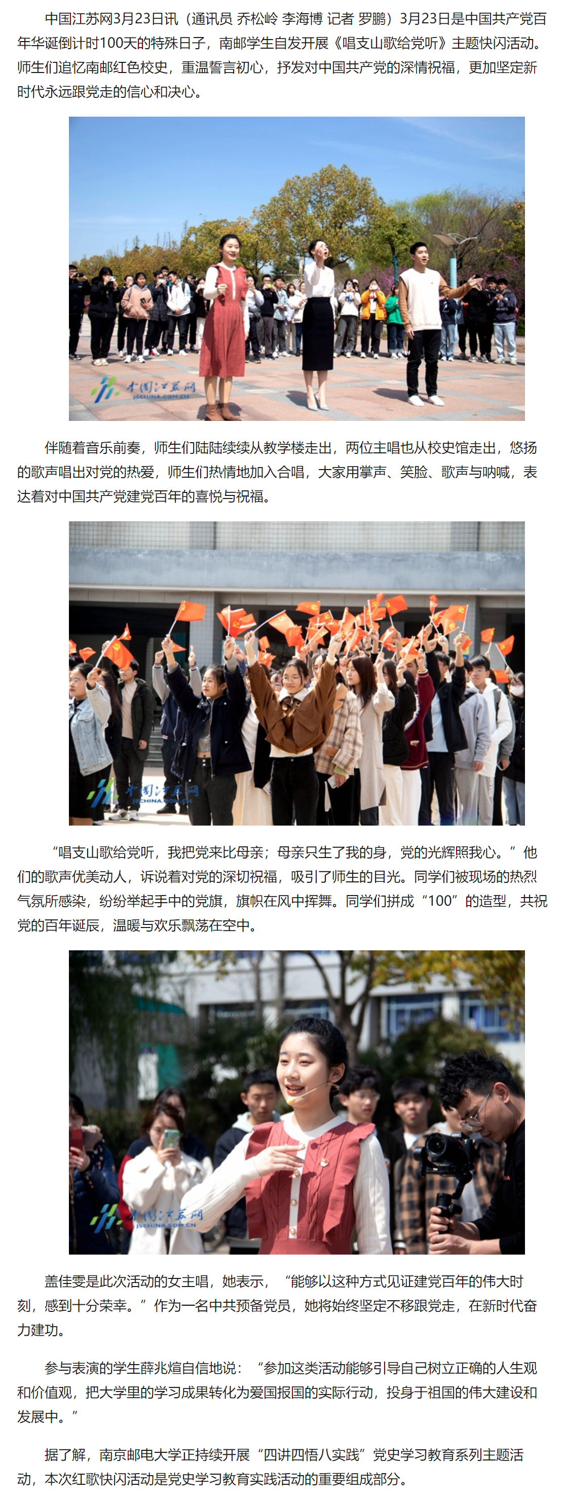 【中国江苏网】100年,100天!南邮学生唱支山歌给党听