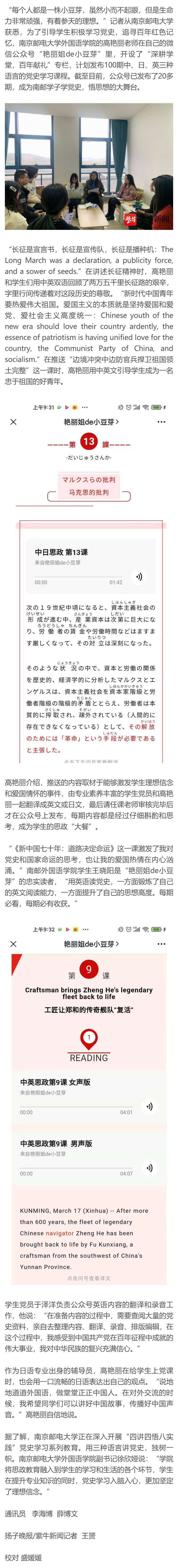 【扬子晚报客户端】3种语言讲党史!南邮这位辅导员厉害了
