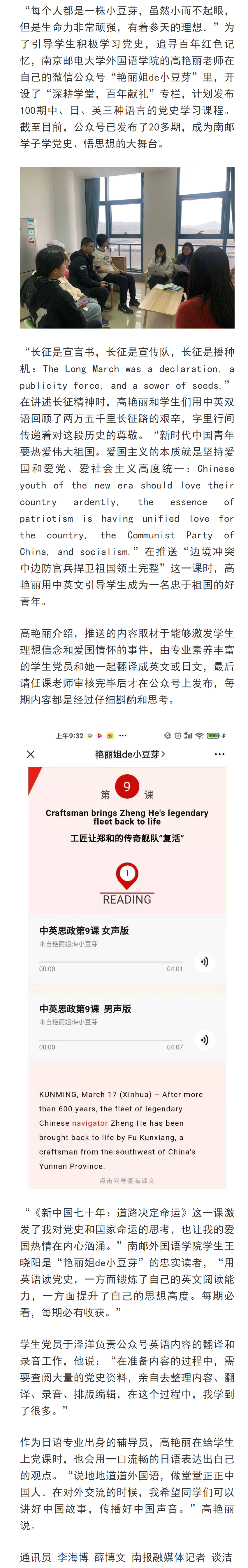 【南京日报客户端】3种语言讲党史!南邮这位辅导员厉害了