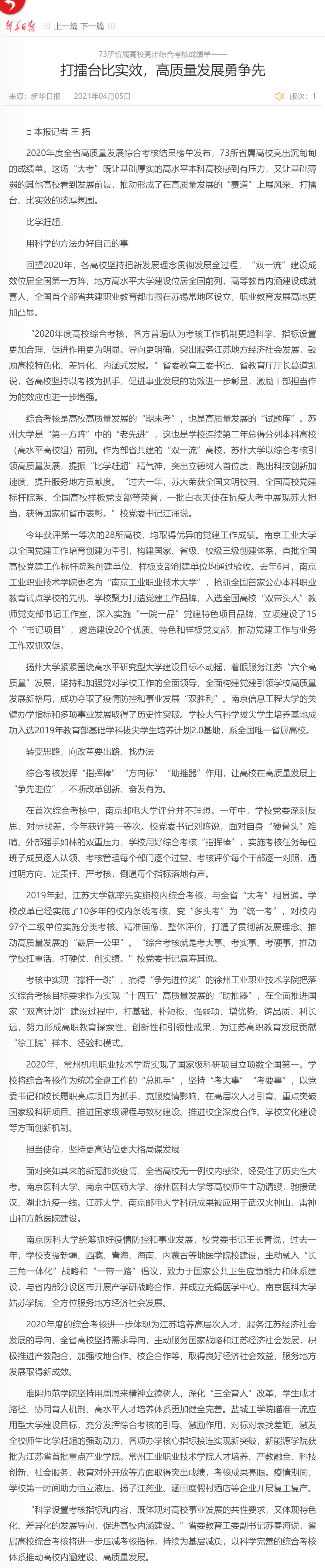【新华日报】73所省属高校亮出综合考核成绩单——打擂台比实效,高质量发展勇争先