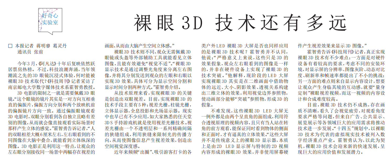 【新华日报】裸眼3D技术还有多远