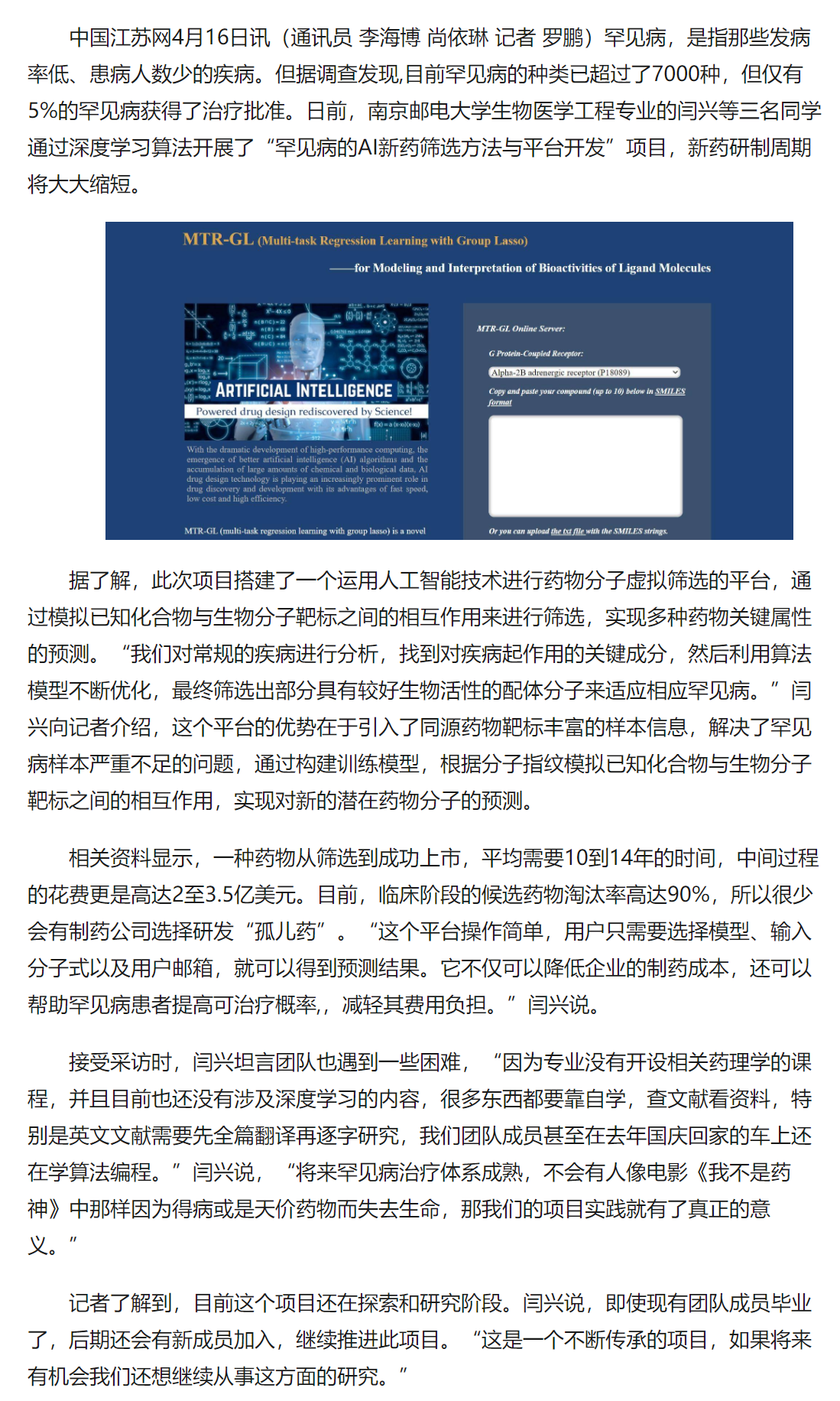 【中国江苏网】治疗罕见病 南邮科研团队用上“超级武器”