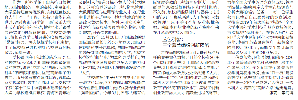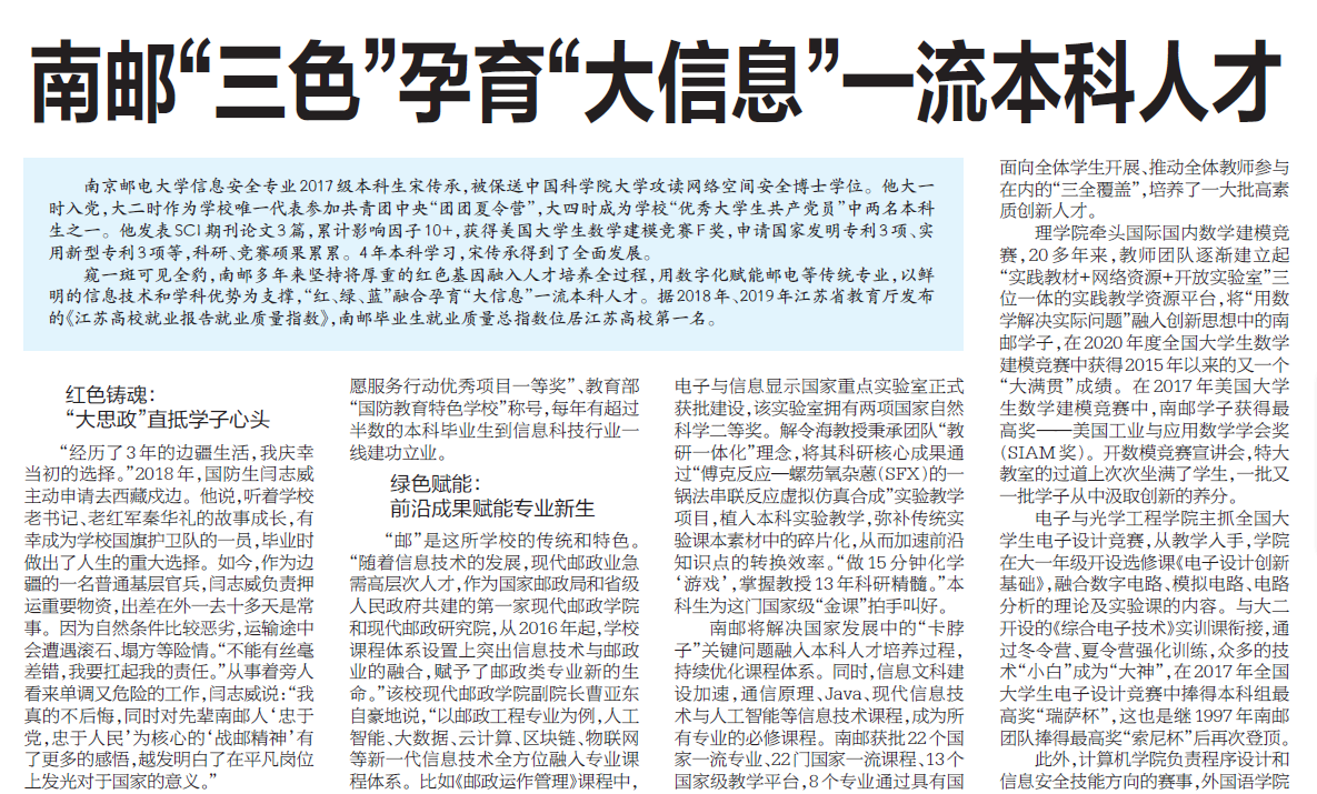 【新华日报】南邮“三色”孕育“大信息”一流本科人才