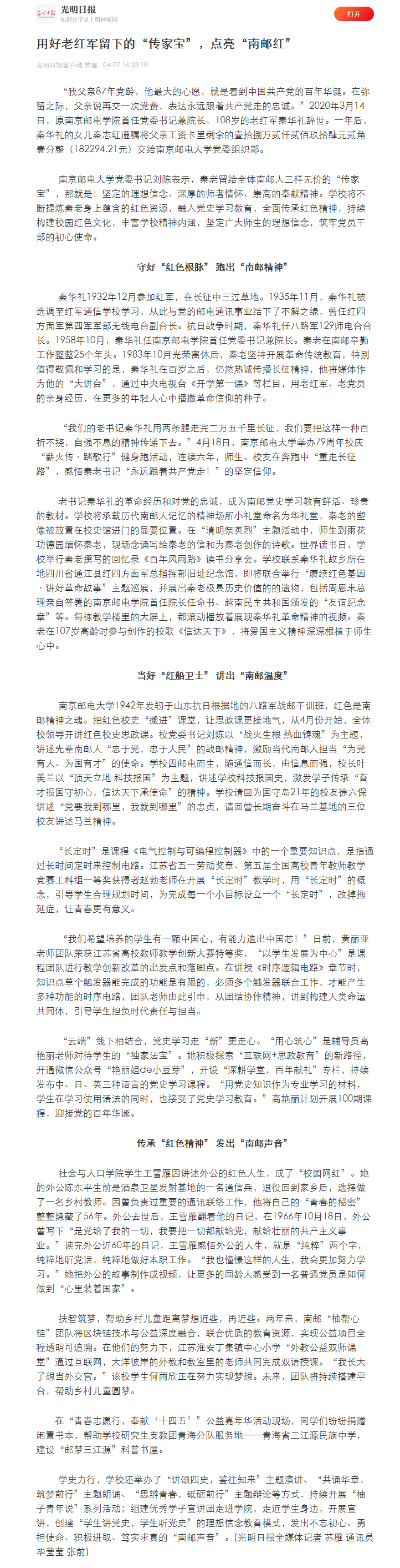 【光明日报客户端】用好老红军留下的“传家宝”,点亮“南邮红”
