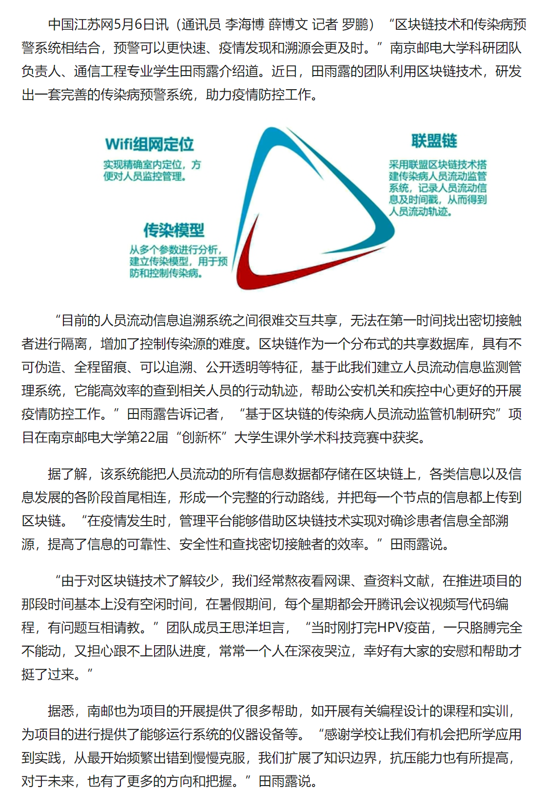 【中国江苏网】助力疫情防控 南邮科研团队研发传染病预警系统