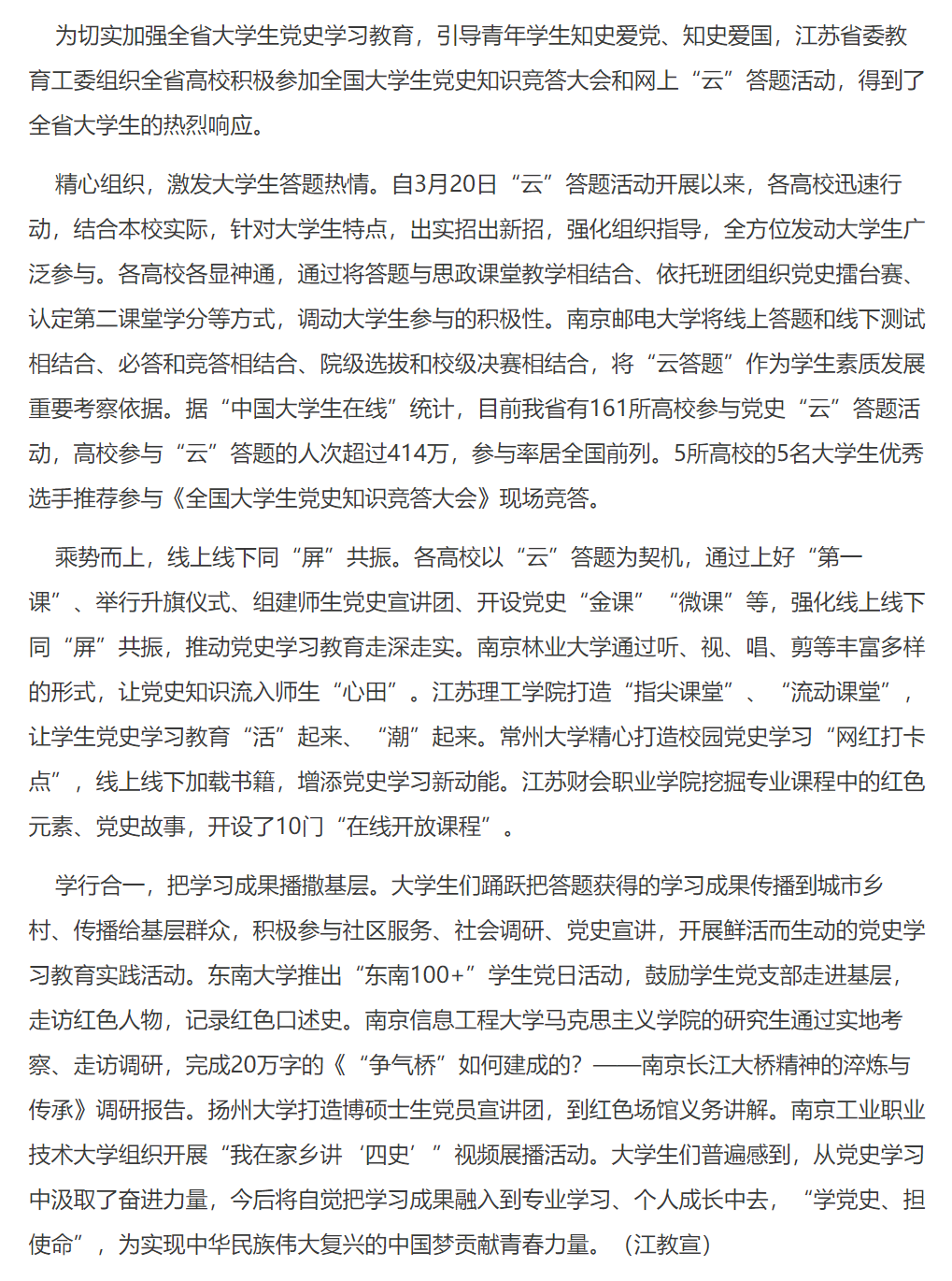 【新华网】江苏百校学子“云”答题,党史学习更走心