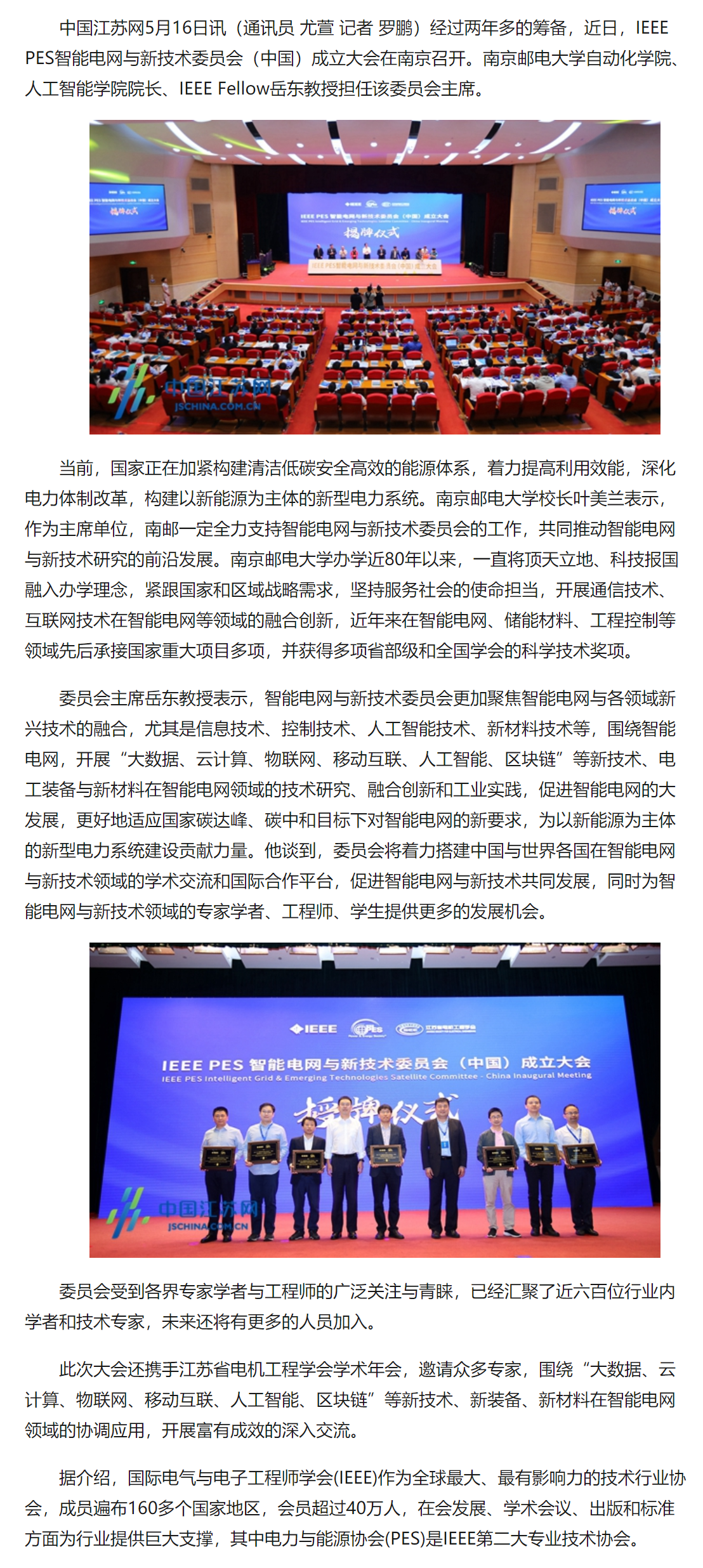 【中国江苏网】助力构建新型电力系统 智能电网与新技术委员会在宁成立