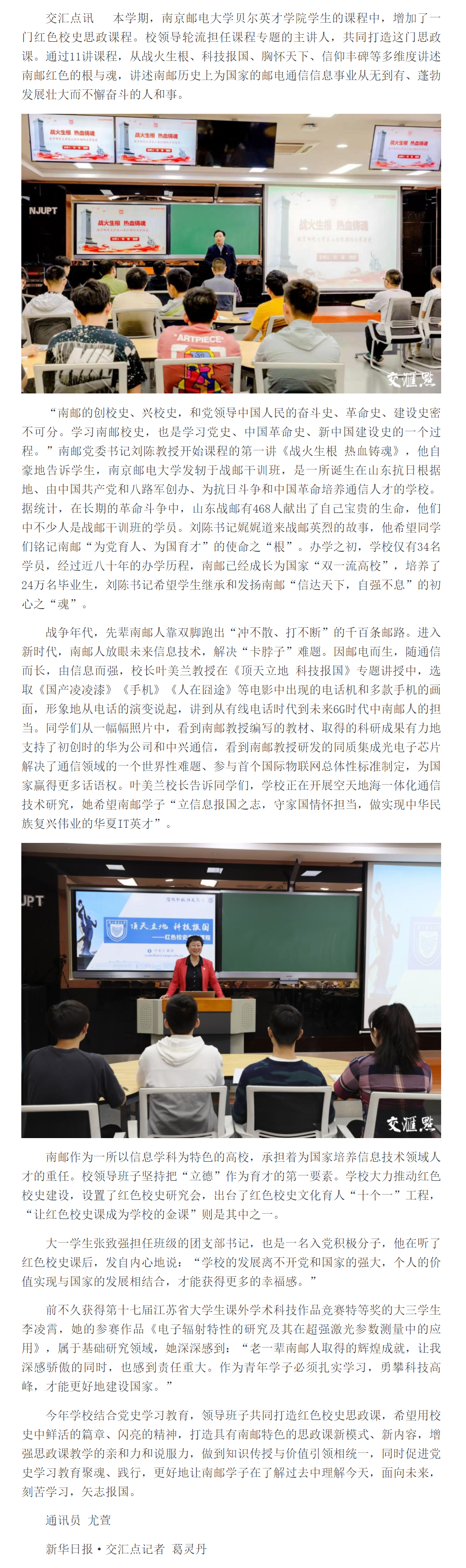 【新华日报客户端】南邮领导班子共同打造红色校史思政课