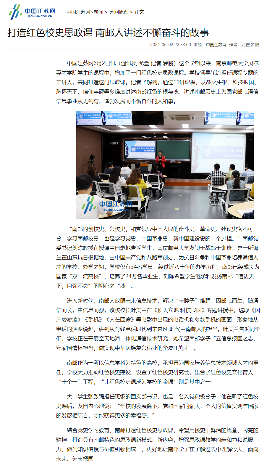 【中国江苏网】打造红色校史思政课 南邮人讲述不懈奋斗的故事