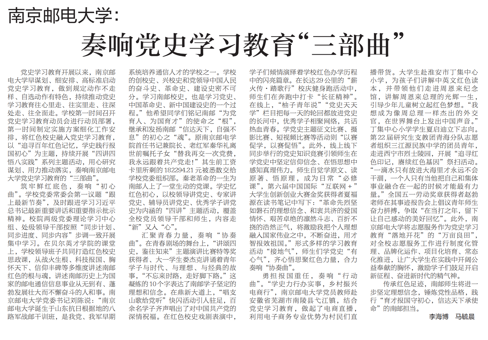 【新华日报】南京邮电大学:  奏响党史学习教育“三部曲”