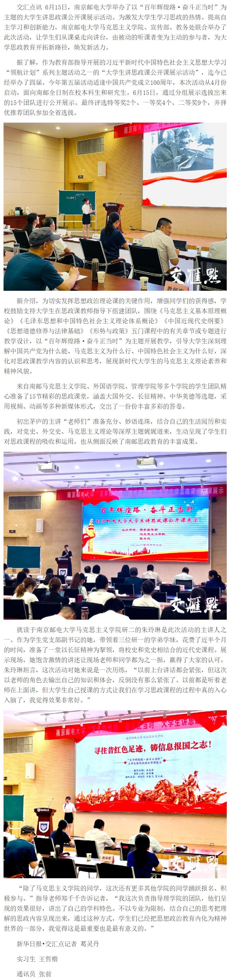 【新华日报客户端】把讲台交给学生,这所高校的思政教育出“新招”