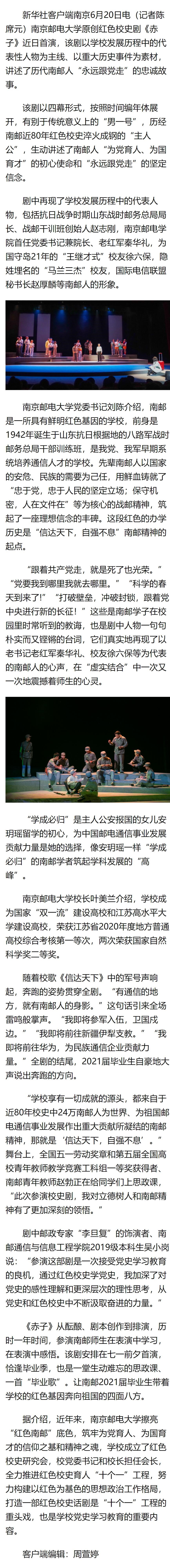 【新华社客户端】南邮毕业季前夕首演原创红色校史剧《赤子》