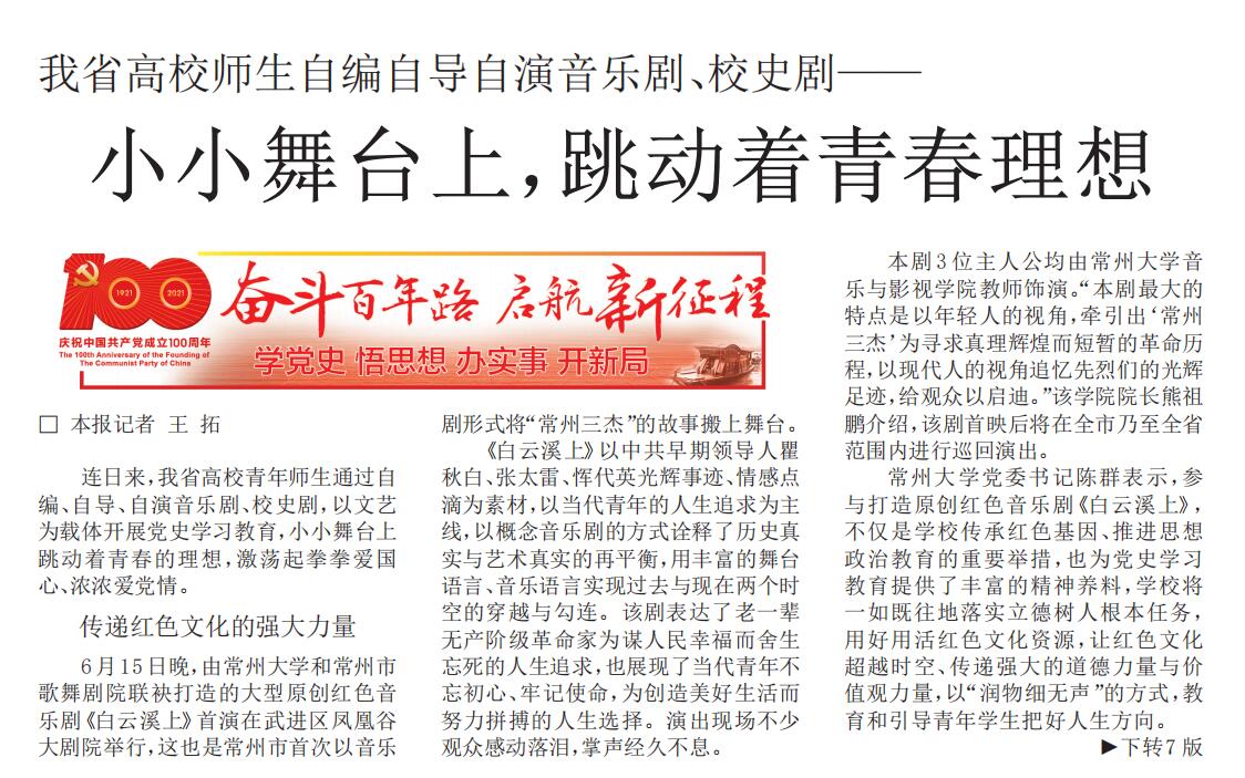 【新华日报】头版:小小舞台上,跳动着青春理想